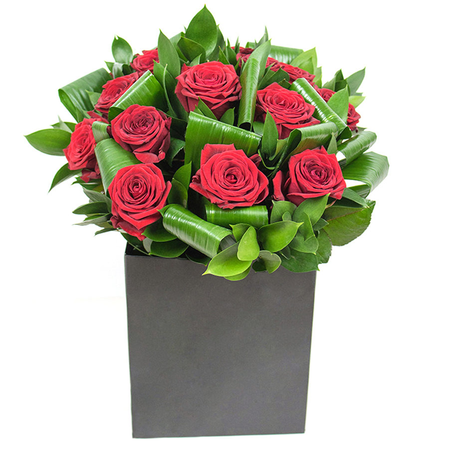 Celebrate love and beauty with our Classic Red Romance Bouquet. This exquisite arrangement features stunning red roses intermingled with the lush accents of aspidistra leaves and ruscus. Every bloom is expertly hand-picked to ensure the highest standard of freshness and quality, creating a display that radiates passion and elegance.